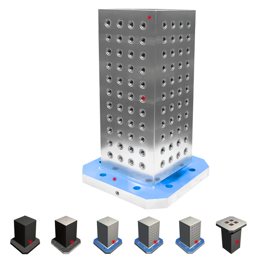 Especialmente desenvolvidos para Centros de Usinagem Horizontais, a Triaxis oferece uma linha completa de cubos, suportes, cantoneiras e placas construídas em Ferro Fundido monobloco G30, com paredes de espessura de 43 a 45 mm e com tratamento duplo de distensão e estabilização.